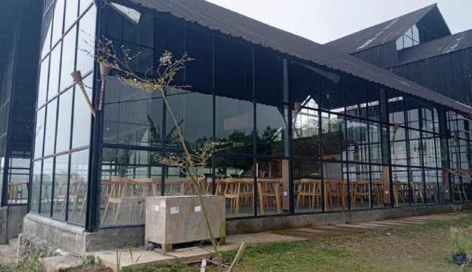Sudah ada bangunan resto dan hotel tinggal finishing.