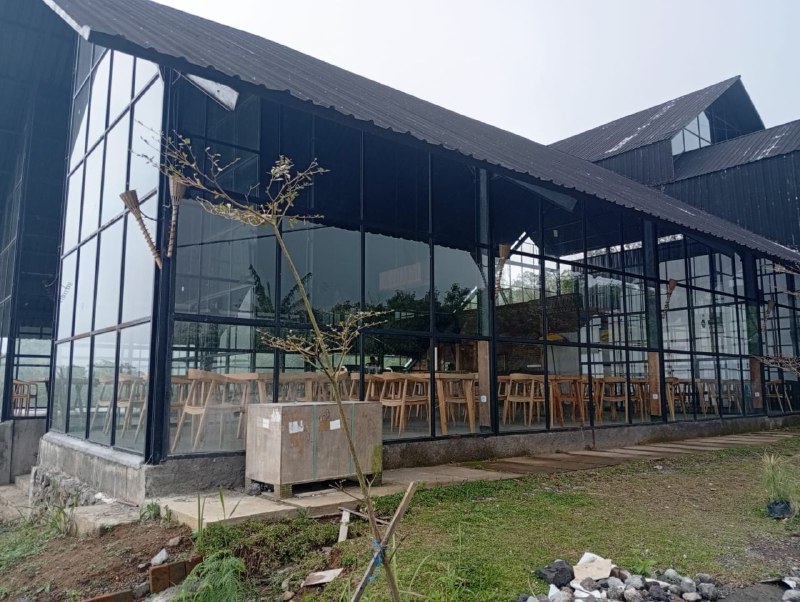 Sudah ada bangunan resto dan hotel tinggal finishing.