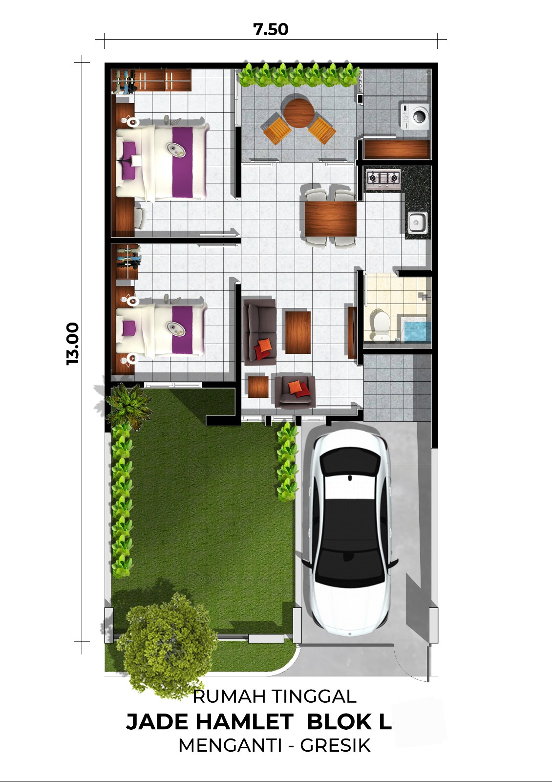 > Ukuran Lahan = 7,5m x 13m