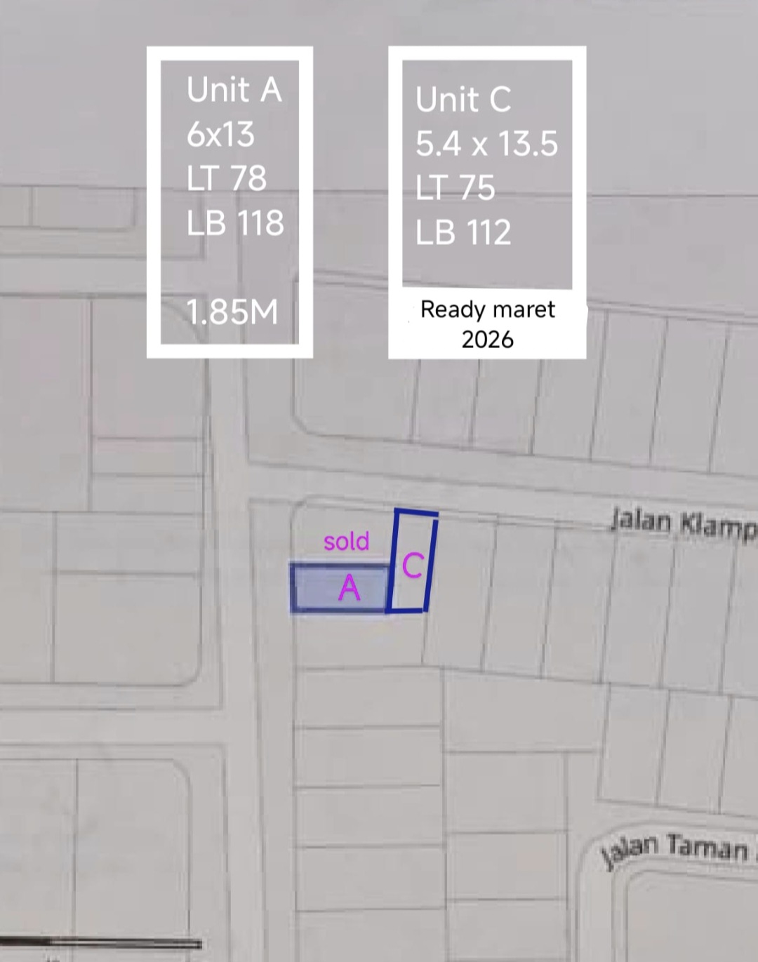 Luas Tanah / Luas Bangunan 75 m2 / 112 m2